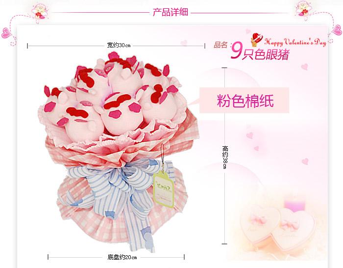 • 包   装粉色卷边纸内衬,粉色方格手揉纸外围包装,蓝色条纹蝴蝶结束扎