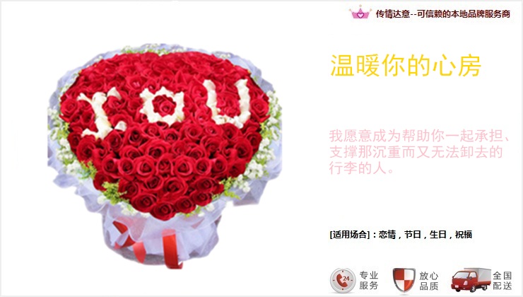 服务说明:贝贝琪供网上预订鲜花花束、鲜花花篮等服务,为广大用户提供一个浪漫、时尚、品质的蛋糕、鲜花预定配送平台,您只要通过麦时光网上提交好订单,我们就会为您及时送达。如有什么疑问或需要帮助请联系在线客服或拨打客服电话。