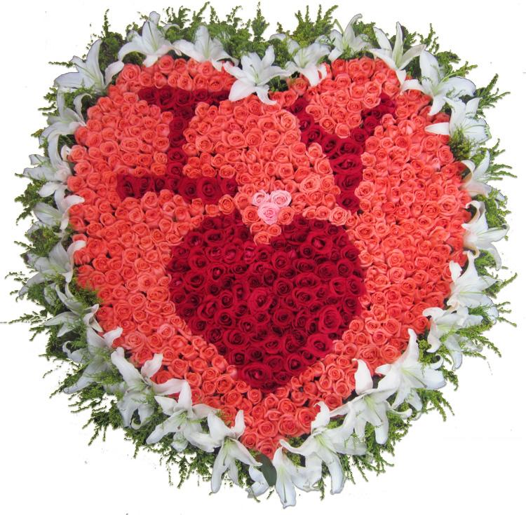 • 材   料999朵混合玫瑰,香水百合花 黄莺围边.