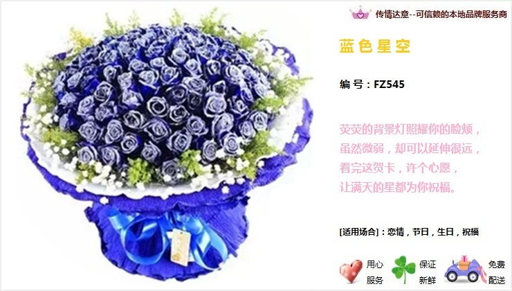 • 材   料银边蓝玫瑰99枝,黄莺,满天星
